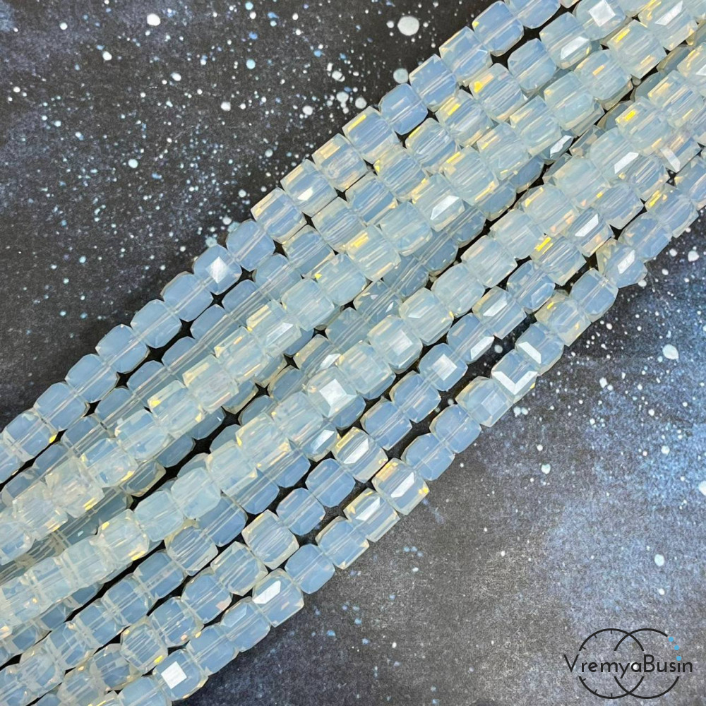 Бусины кубики из граненого стекла, 6 мм, цв. лунный (1/2 нити, ок. 35 шт.)
