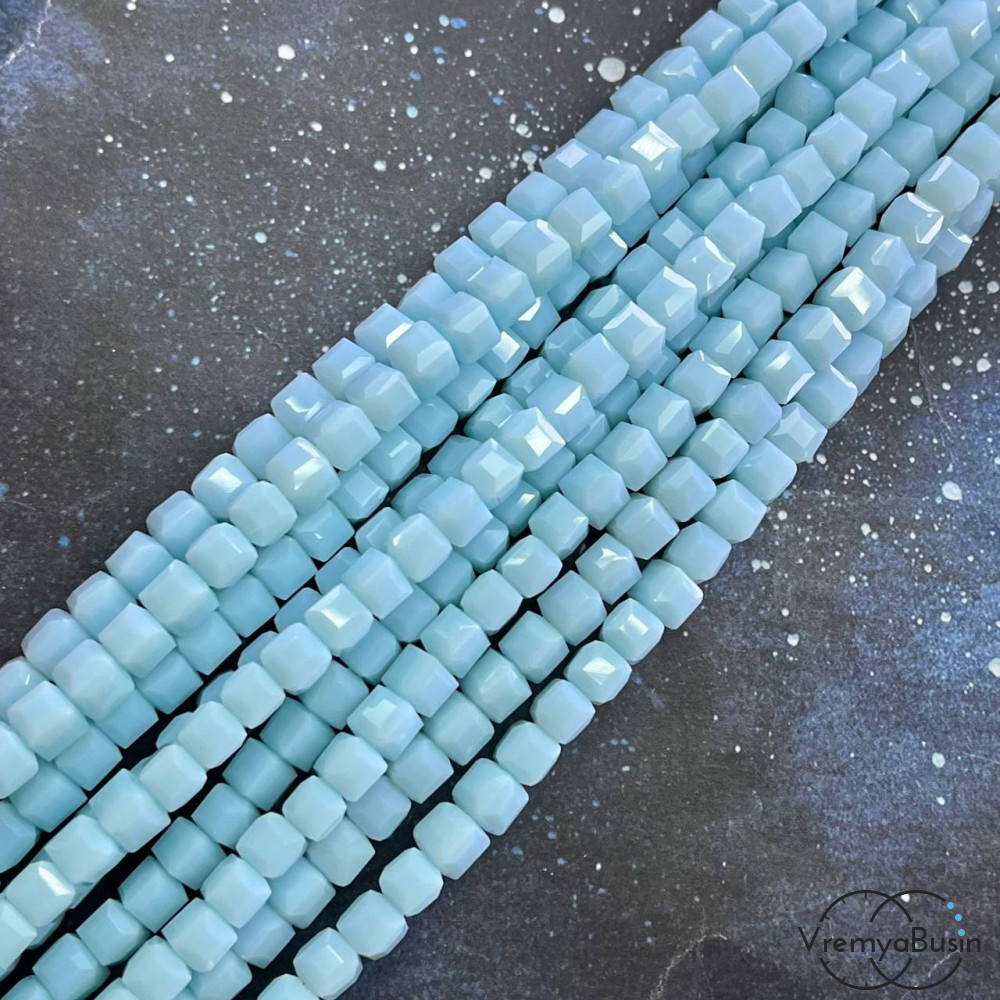 Бусины кубики из граненого стекла, 6 мм, цв. бирюзовый матовый (1/2 нити, ок. 35 шт.)