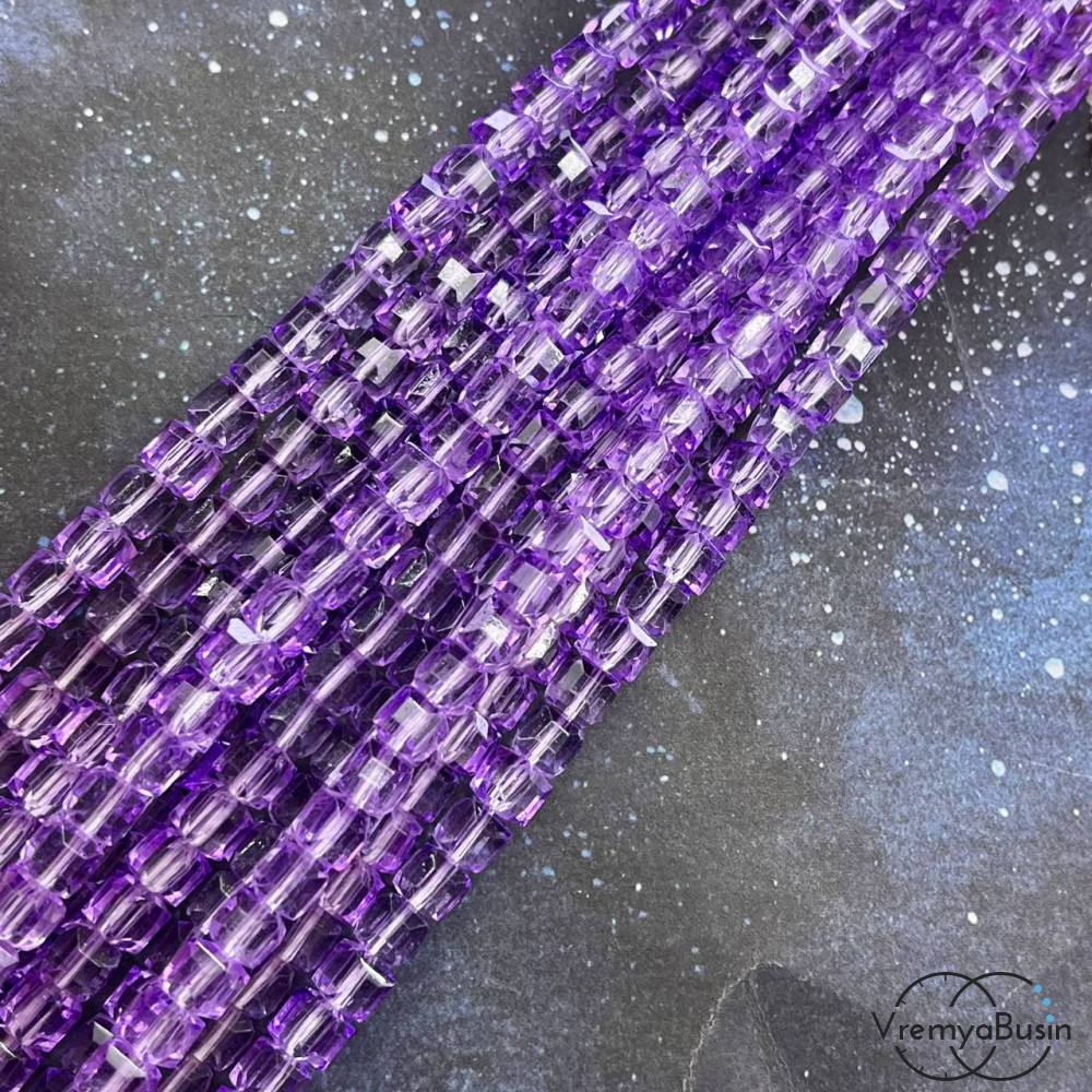 Бусины кубики из граненого стекла, 6 мм, цв. сиреневый (1/2 нити, ок. 35 шт.)
