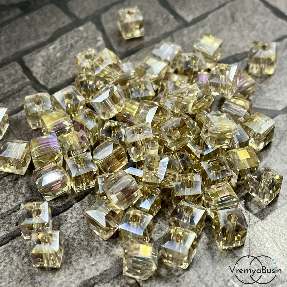 Бусины кубики из граненого стекла, 6 мм цв. (упак. 10 шт.)