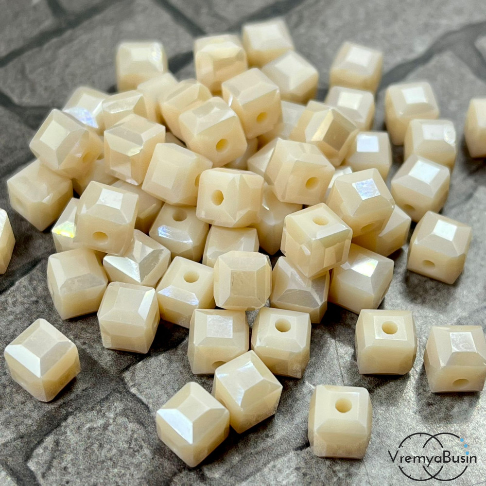Бусины кубики из граненого стекла, 6 мм цв. кремовый матовый (упак. 10 шт.)