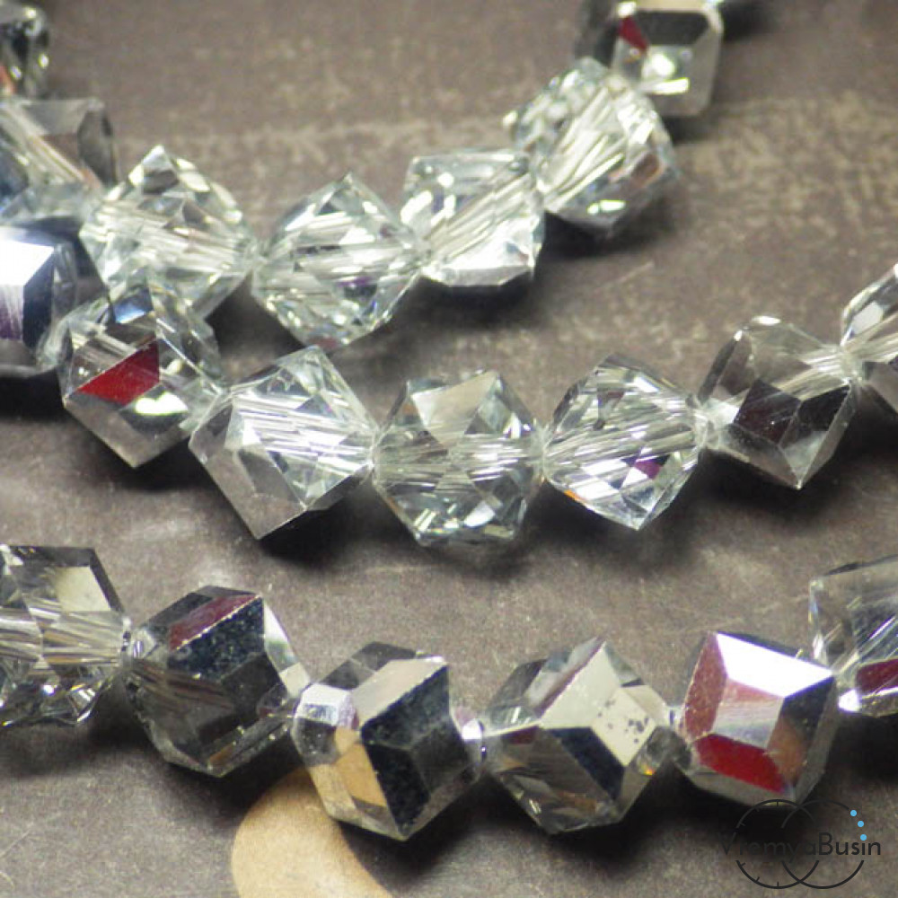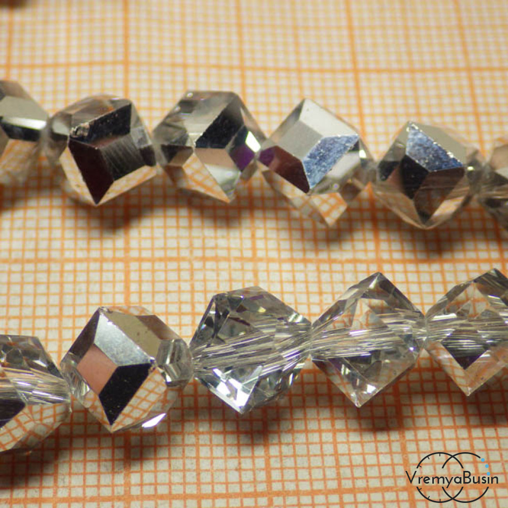 Бусины-ромбики из граненого стекла 8х8 мм (1 шт.) цв. ПРОЗРАЧНО-СЕРЕБРЯНЫЙ