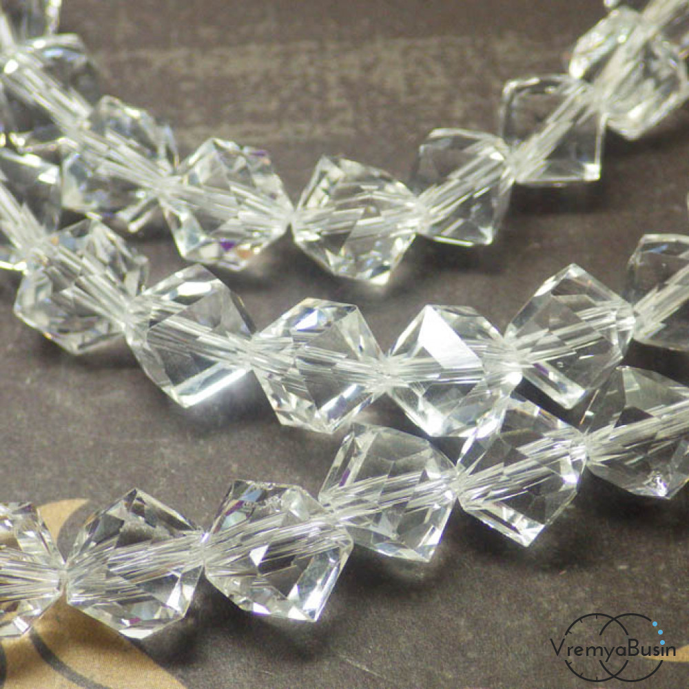 Бусины-ромбики из граненого стекла 8х8 мм (1 шт.) цв. ПРОЗРАЧНЫЙ