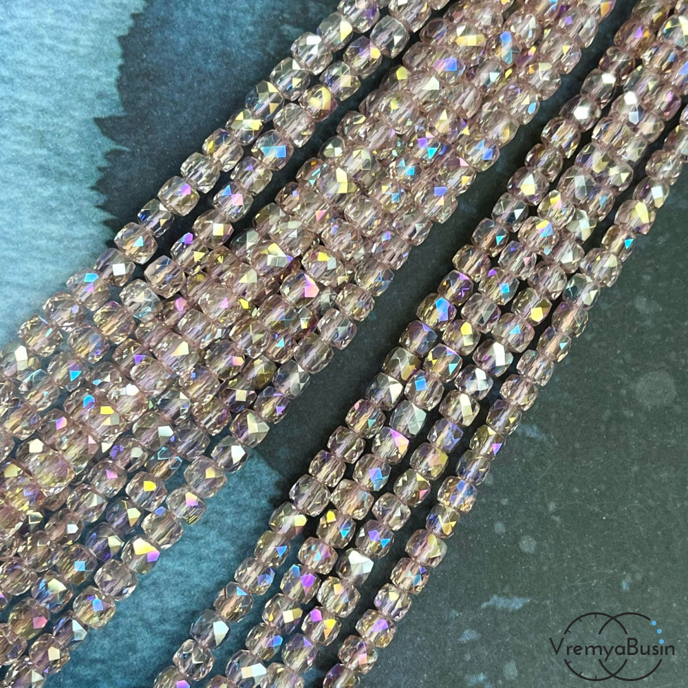 Бусины кубики из граненого стекла, 5 мм (1/2 нити, ок. 45 шт.)