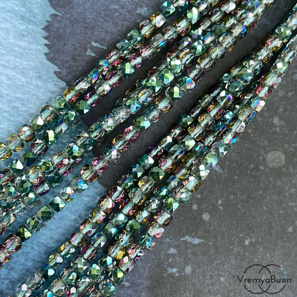 Бусины кубики из граненого стекла, 5 мм (1/2 нити, ок. 45 шт.)