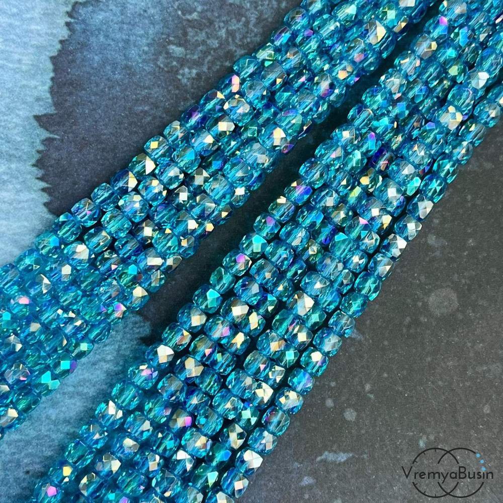 Бусины кубики из граненого стекла, 5 мм (1/2 нити, ок. 45 шт.)