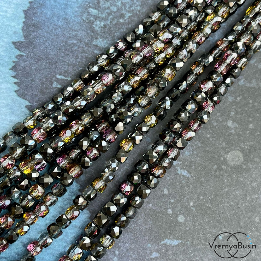 Бусины кубики из граненого стекла, 5 мм (1/2 нити, ок. 45 шт.)