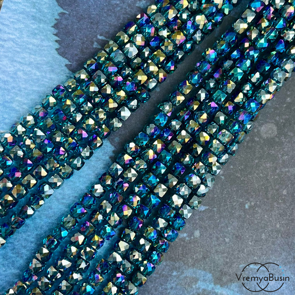 Бусины кубики из граненого стекла, 5 мм (1/2 нити, ок. 45 шт.)
