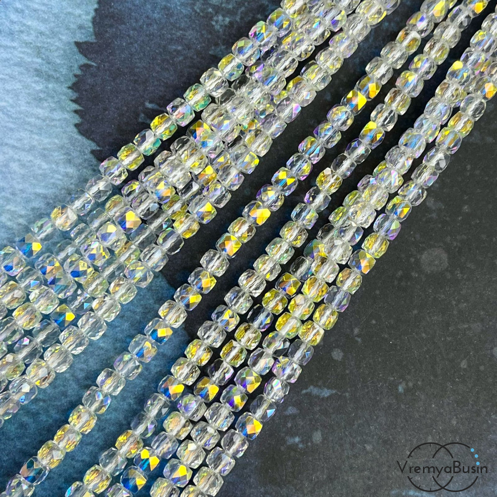 Бусины кубики из граненого стекла, 5 мм (1/2 нити, ок. 45 шт.)