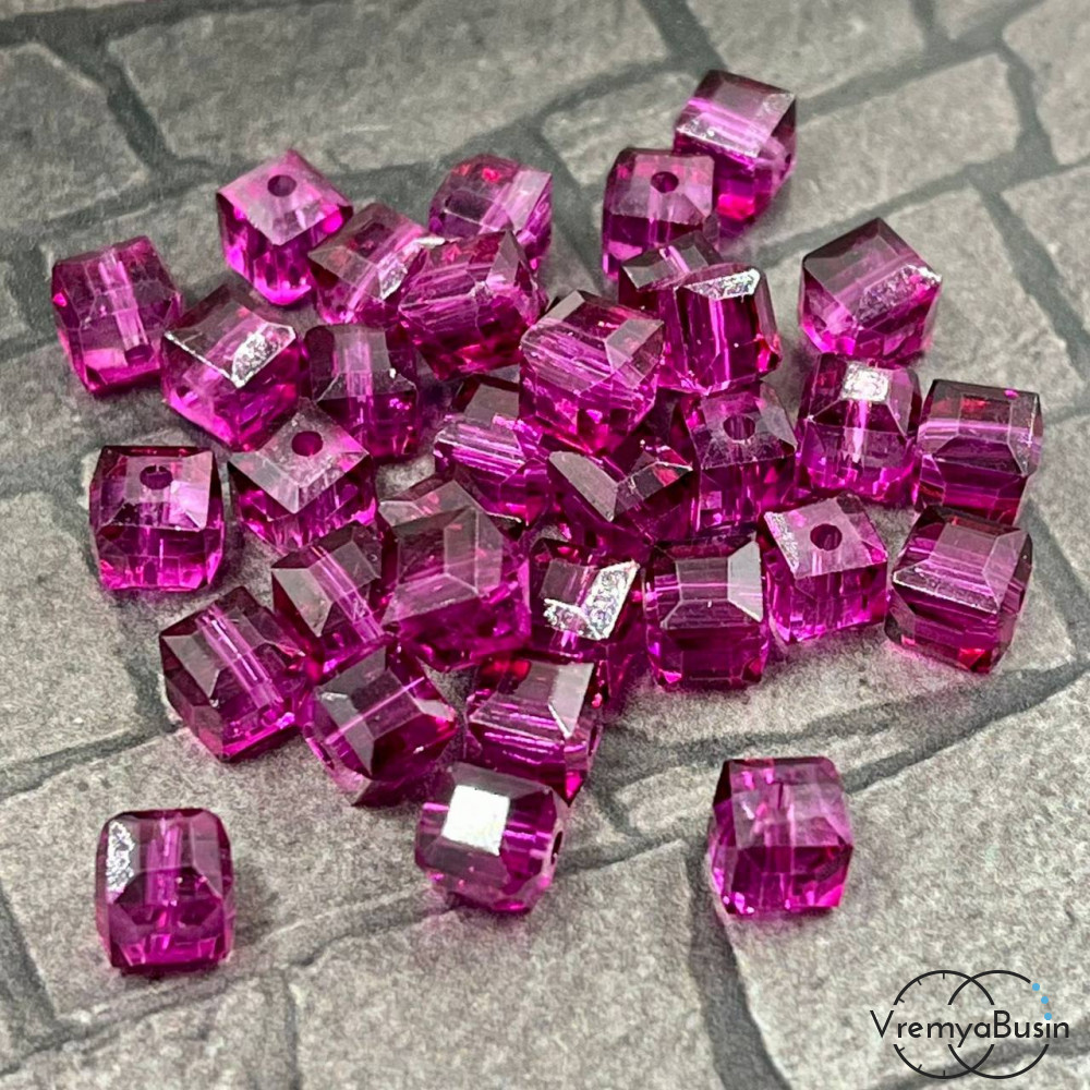 Бусины кубики из граненого стекла, 6 мм, цв. фуксия (упак. 10 шт.)