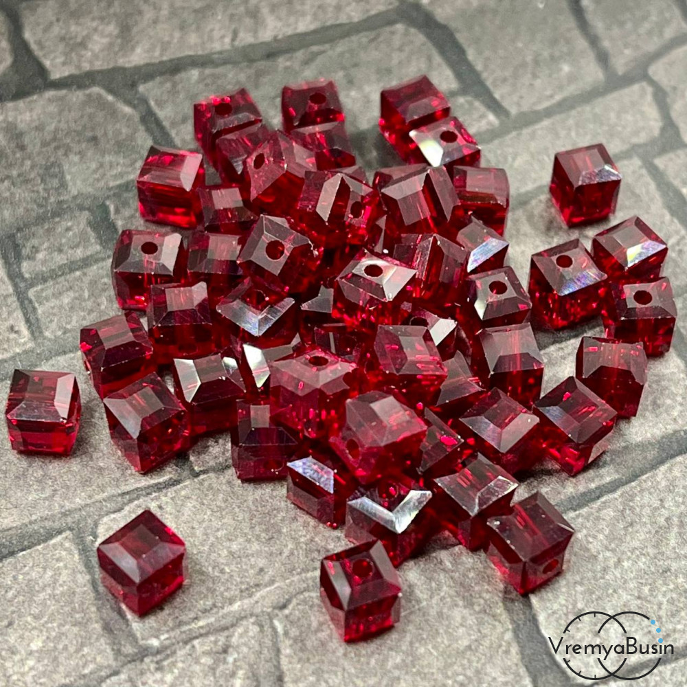 Бусины кубики из граненого стекла, 6 мм, цв. бордовый (упак. 10 шт.)