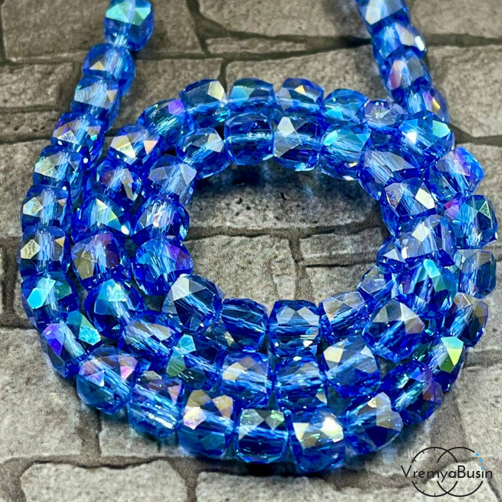 Бусины кубики из граненого стекла с переливом, 6 мм (упак. 10 шт.)