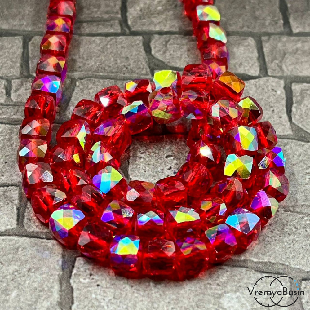 • Бусины кубики из граненого стекла с переливом, 6 мм    (упак. 10 шт.)
