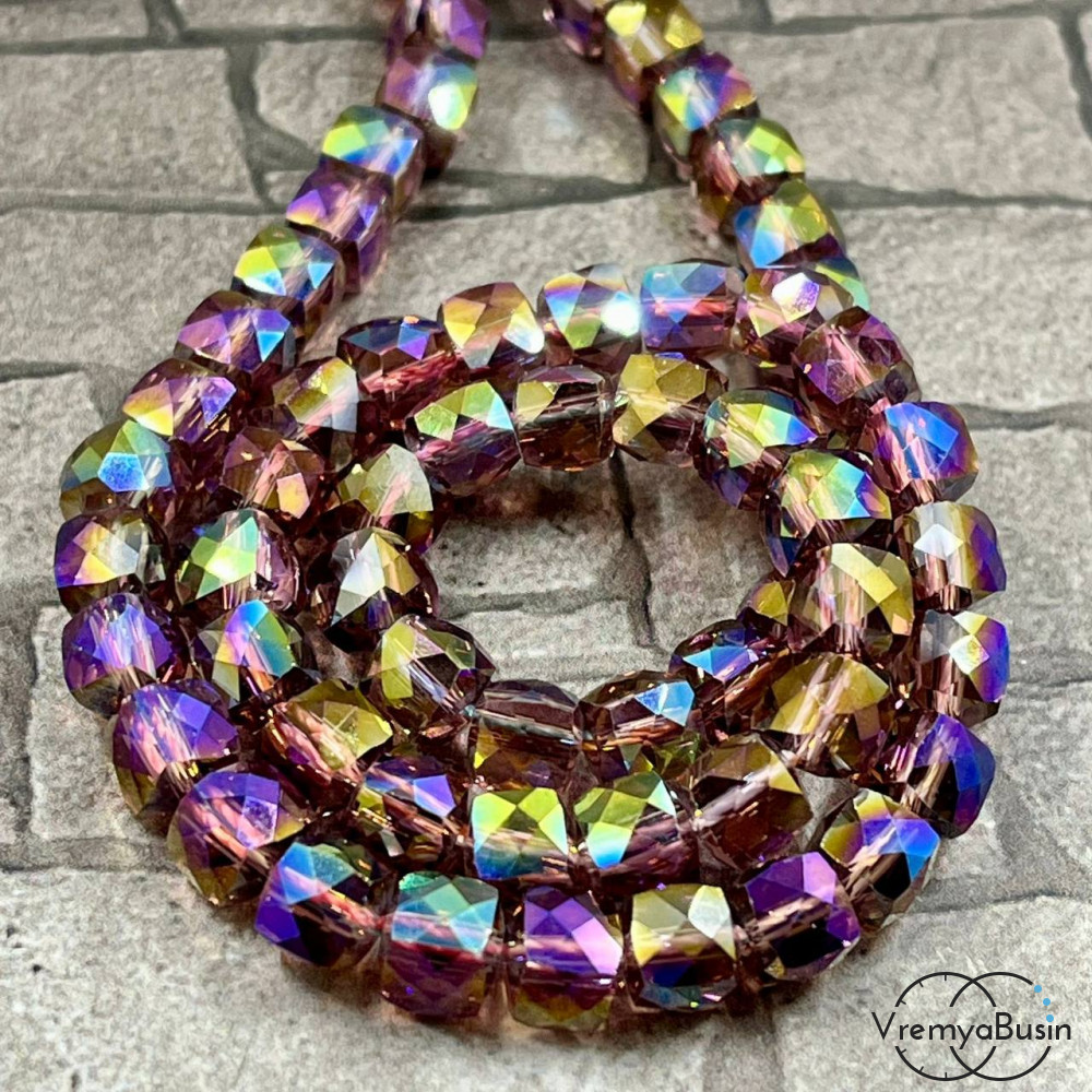 Бусины кубики из граненого стекла с переливом, 6 мм (упак. 10 шт.)