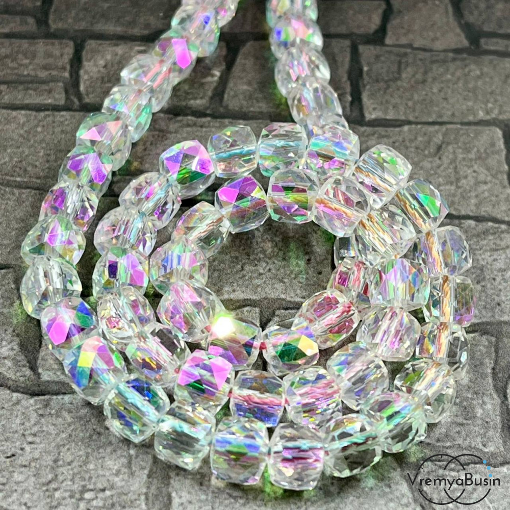 Бусины кубики из граненого стекла с переливом, 6 мм (упак. 10 шт.)