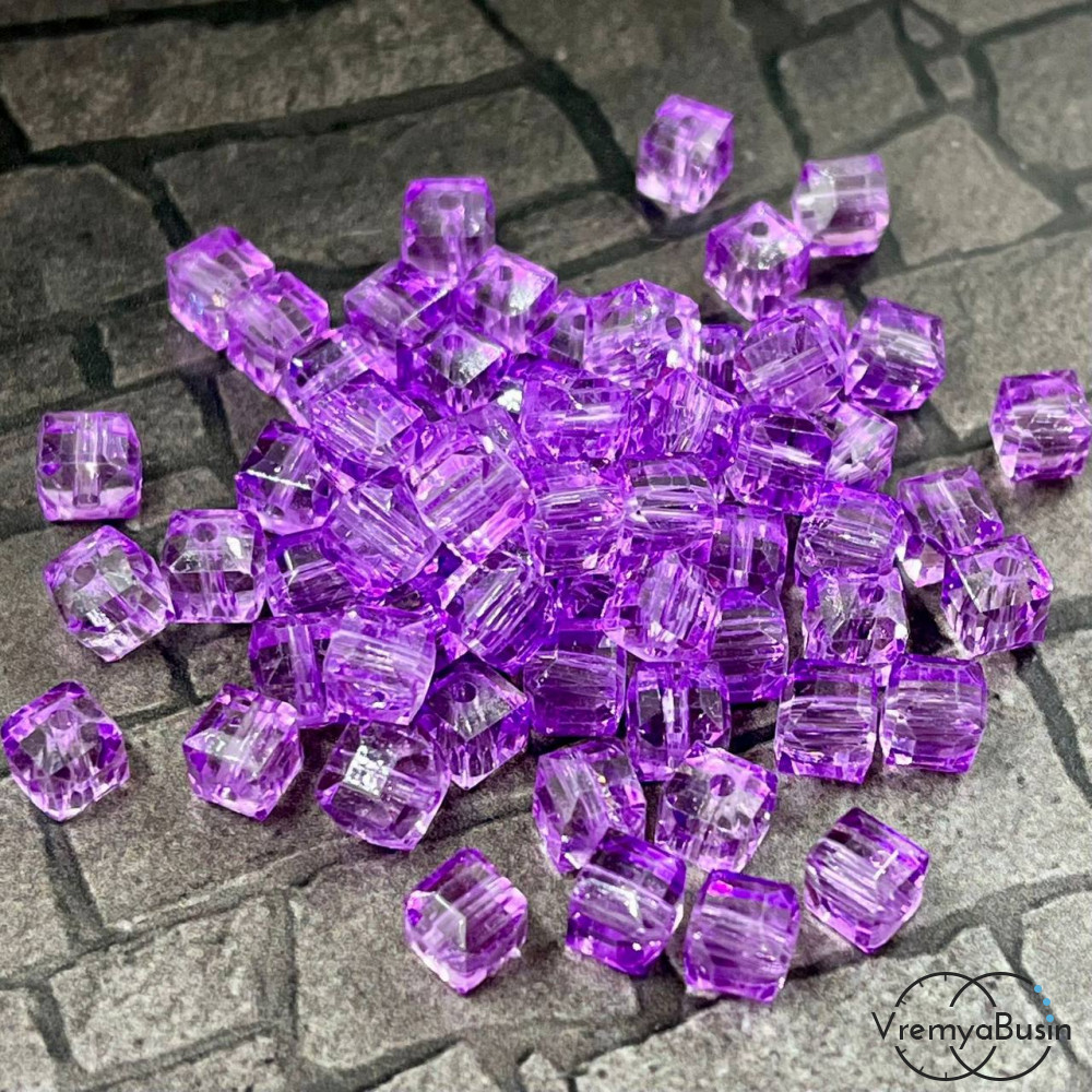 Бусины кубики из граненого стекла, 6 мм, цв. сиреневый (упак. 10 шт.)