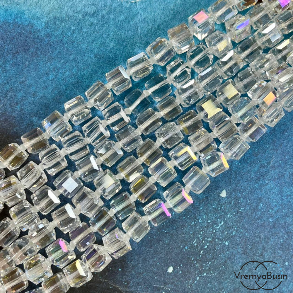 Бусины кубики из граненого стекла, 8 мм (1/2 нити, ок. 29 шт.)