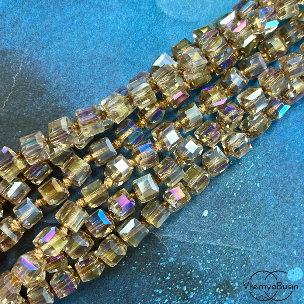 Бусины кубики из граненого стекла, 8 мм (1/2 нити, ок. 29 шт.)