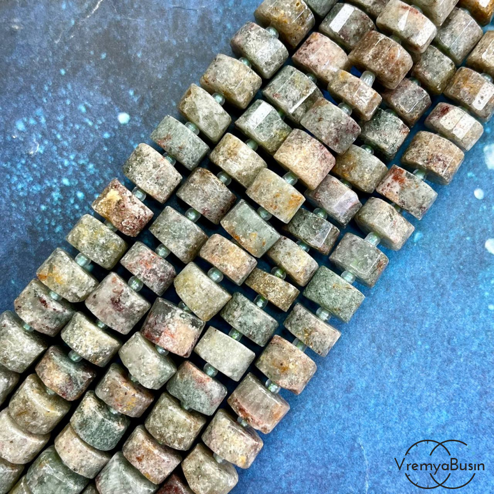 Кварц фантом, крупные бусины-шайбы с гранями, 12х7 мм (нить, ок. 38 шт.)