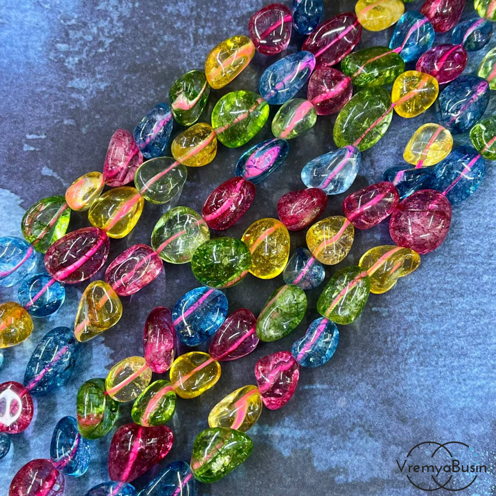 Кварц тонир., галтовка овальная средняя ок. 10х15 мм, цв. микс (нить, ок. 30 шт.)