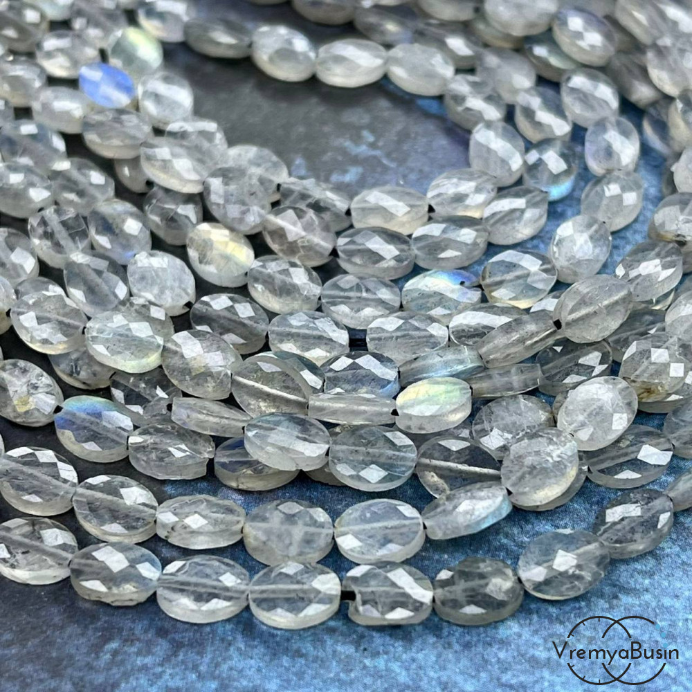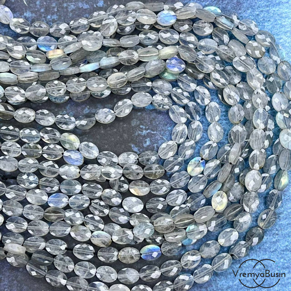 Лабрадор, овал плоский граненый ок. 5х7 мм (1/2 нити, ок. 28 шт.)