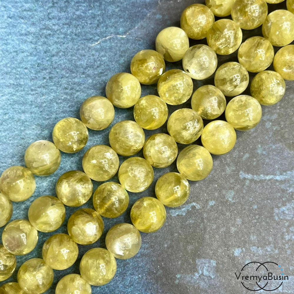 Лепидолит лимонный натур., бусины гладкие шарики ок. 10.5 мм (ок. 18 шт.)