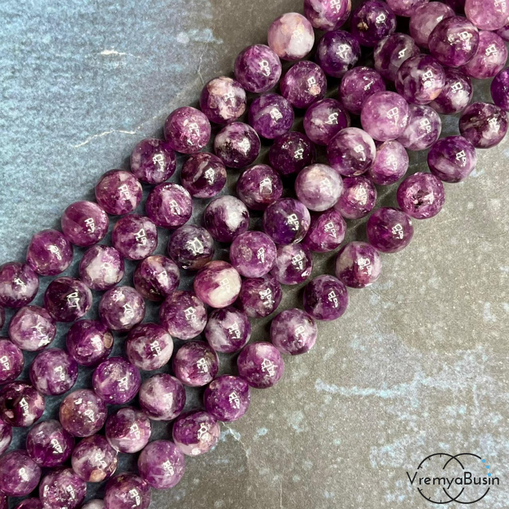 Лепидолит сливовый натур., бусины гладкие шарики ок. 8.5 мм (ок. 23 шт.)
