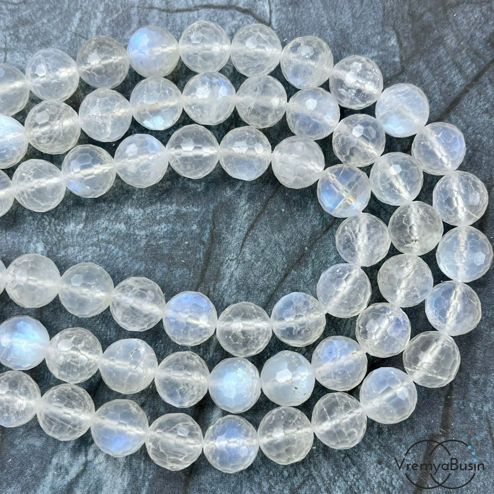 Лунный камень натур., шарик граненый 8 мм (1/2 нити, ок. 24 шт.)