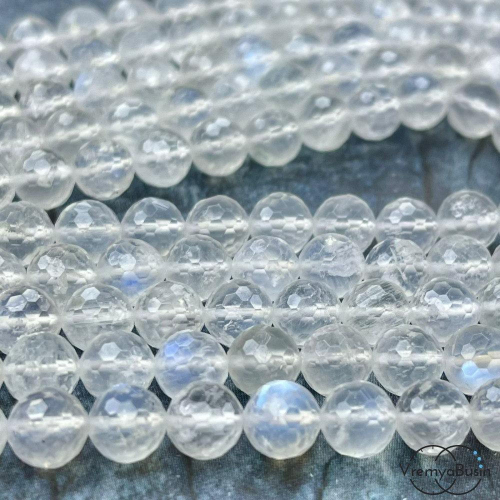 Лунный камень натур., шарик граненый 10 мм (1/2 нити, ок. 19 шт.)
