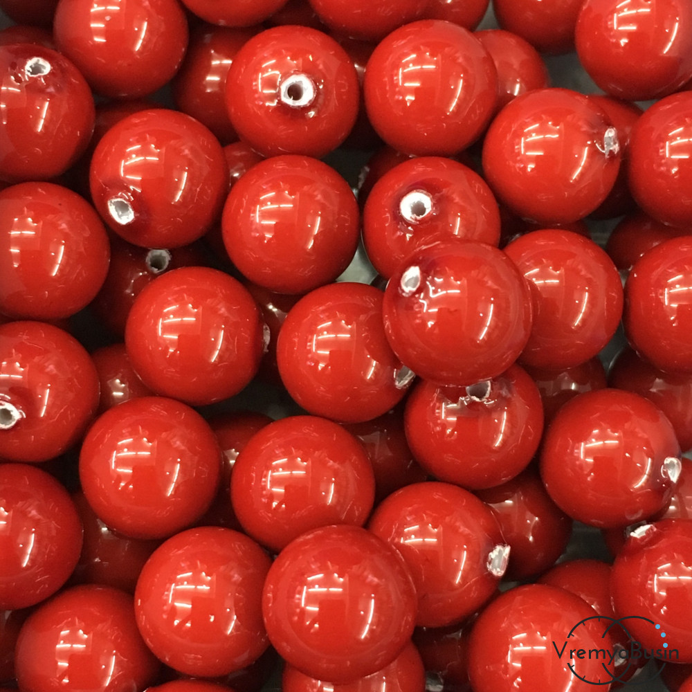 • Майорка, полупросверленные бусины, шарик гладкий, 10 мм, цв. красный (1 шт.)