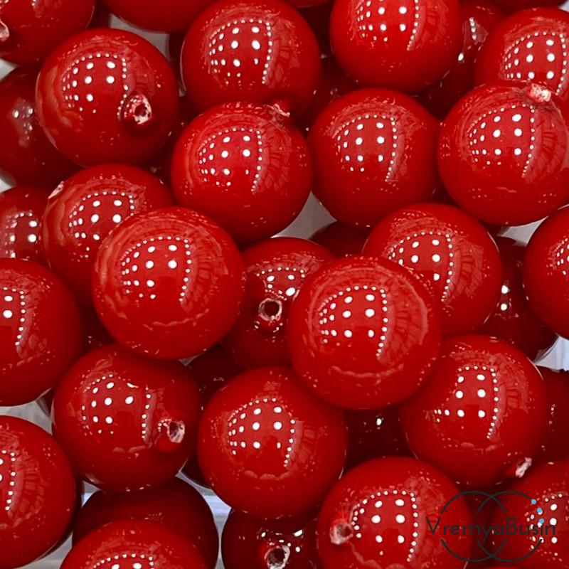 • Майорка, полупросверленные бусины, шарик гладкий, 12 мм, цв. красный (1 шт.)