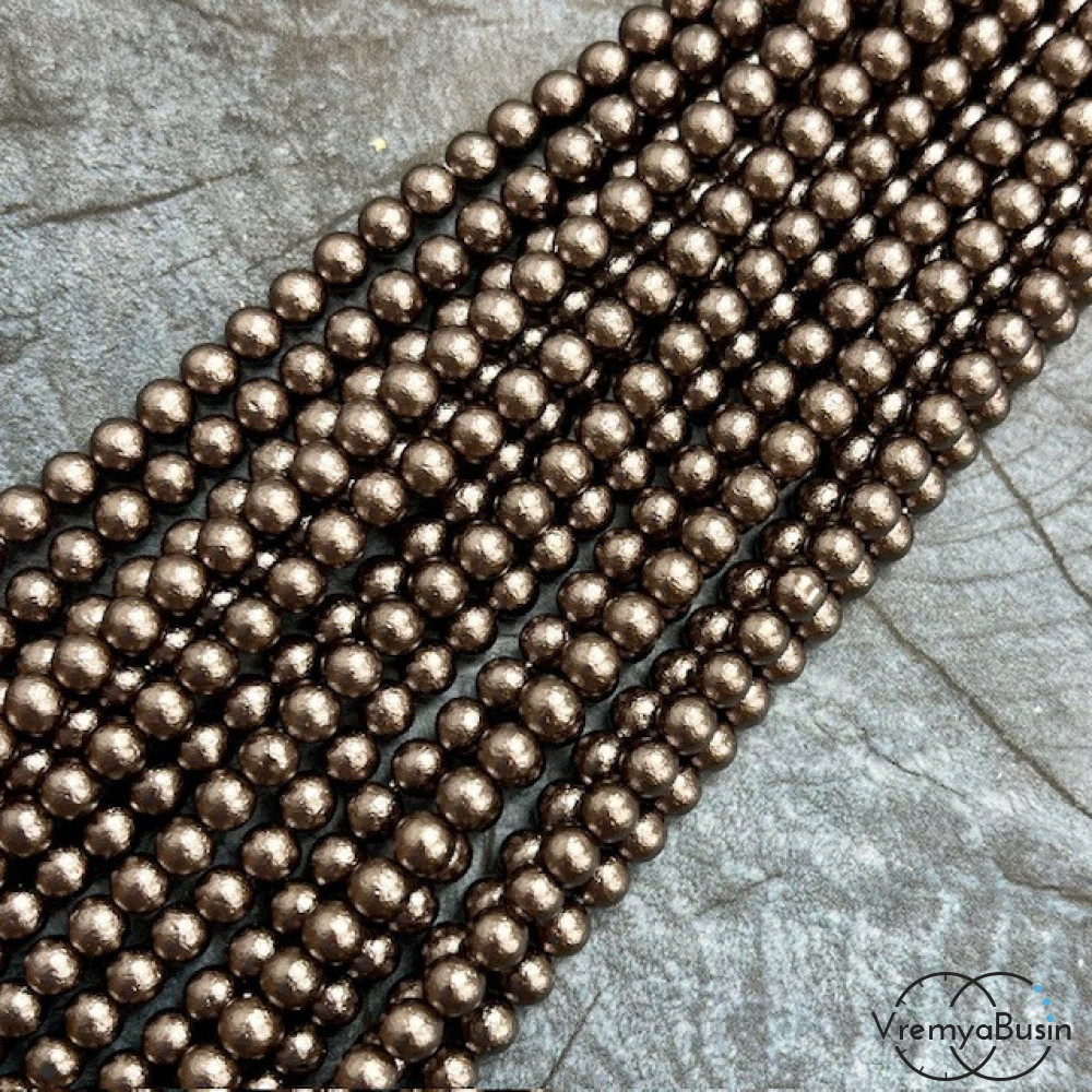 Жемчуг майорка с бархатной поверхностью, шарик 4 мм, цв. шоколадный (нить, ок. 90 шт.)
