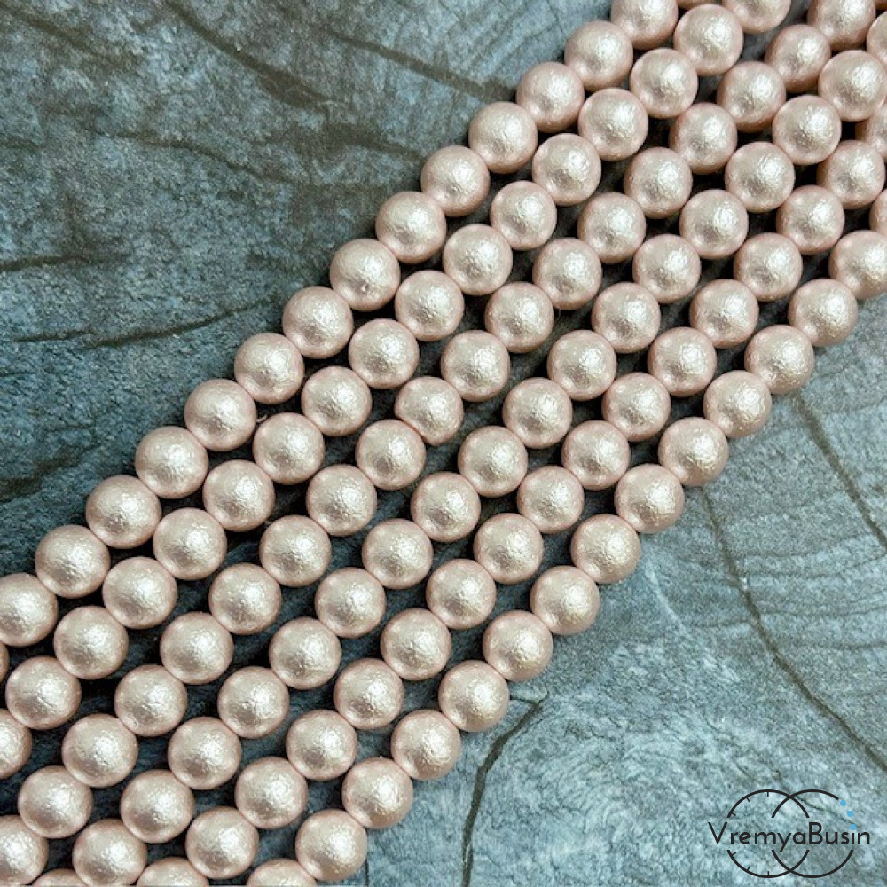 Жемчуг майорка с бархатной поверхностью, шарик 6 мм, цв. розовый (1/2 нити, ок. 32 шт.)