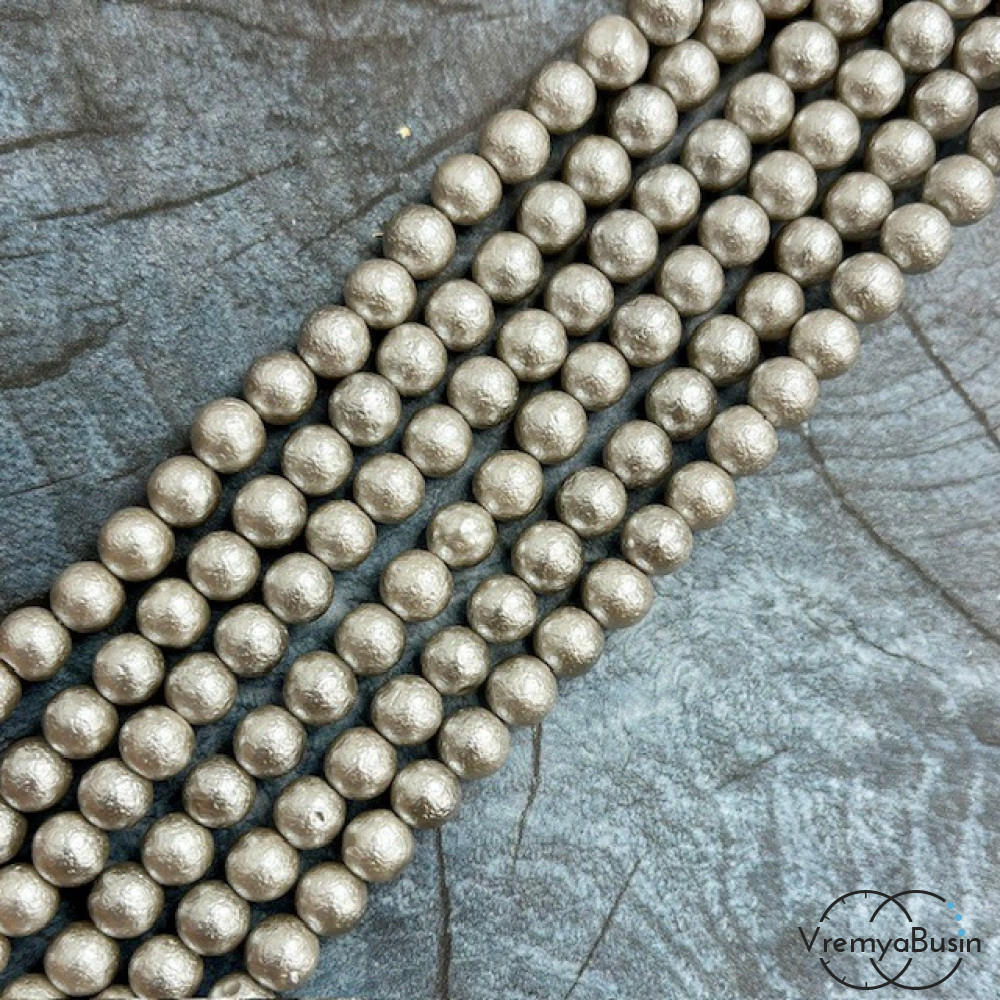 Жемчуг майорка с бархатной поверхностью, шарик 6 мм, цв. серый (1/2 нити, ок. 32 шт.)