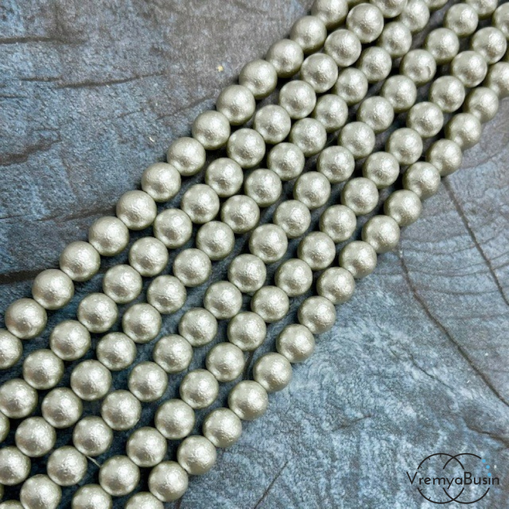 Жемчуг майорка с бархатной поверхностью, шарик 6 мм, цв. светло-серый (1/2 нити, ок. 32 шт.)