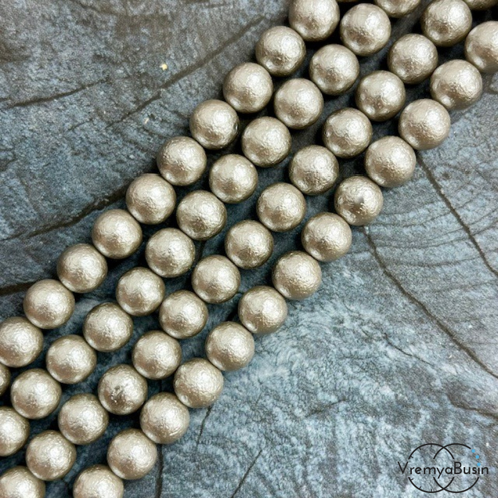 • Жемчуг майорка с бархатной поверхностью, шарик 8 мм, цв. серый  (1/2 нити, ок. 24 шт.)