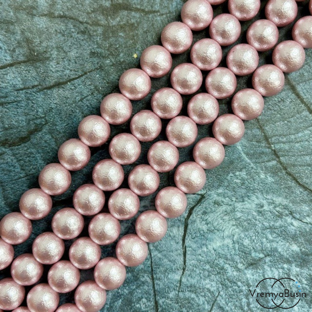 Жемчуг майорка с бархатной поверхностью, шарик 8 мм, цв. сиреневый (1/2 нити, ок. 24 шт.)