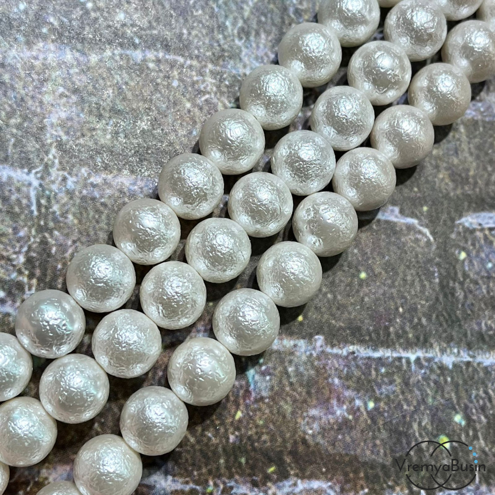 Жемчуг майорка с бархатной поверхностью, цв. белый, шарик 10 мм (1/2 нити, ок. 19 шт.)