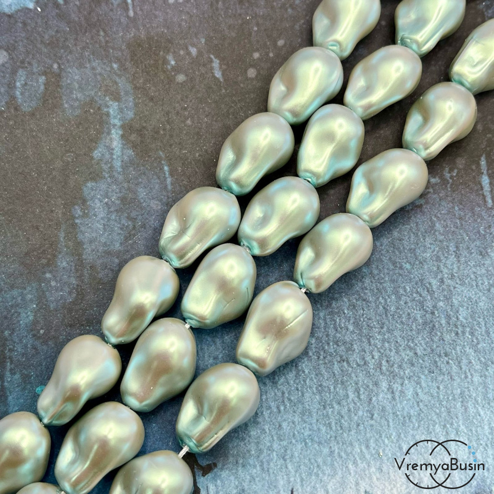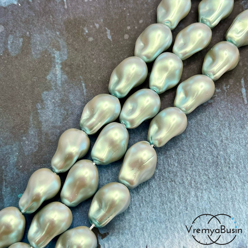 • Жемчуг майорка барочный, ок. 16х22 мм, цв. МЯТНЫЙ  ШЕЛК (1/2 нити, ок. 9 шт.)