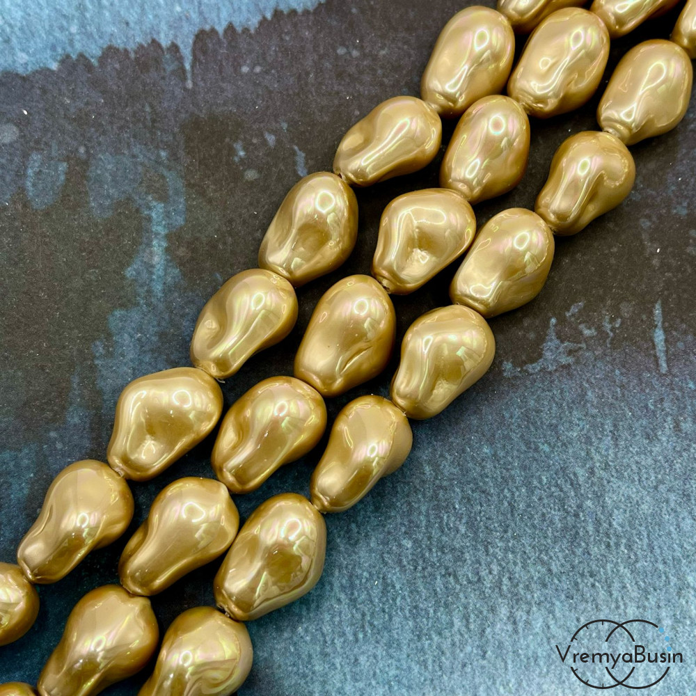 • Жемчуг майорка барочный, ок. 16х22 мм, цв. золотой  (1/2 нити, ок. 9 шт.)