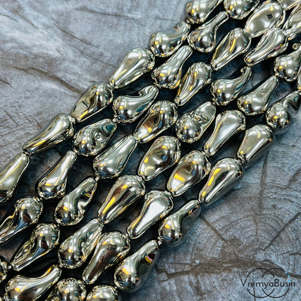 • Жемчуг майорка барокко, зеркальная капля ок. 12х20 мм, цв. серебро (нить, ок. 20 шт.)