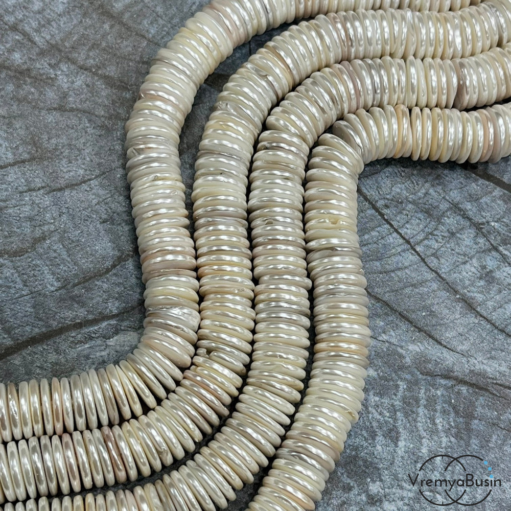 Жемчуг майорка, диск гладкий ок. 12х3 мм, цв. белый (нить, ок. 130 шт.)