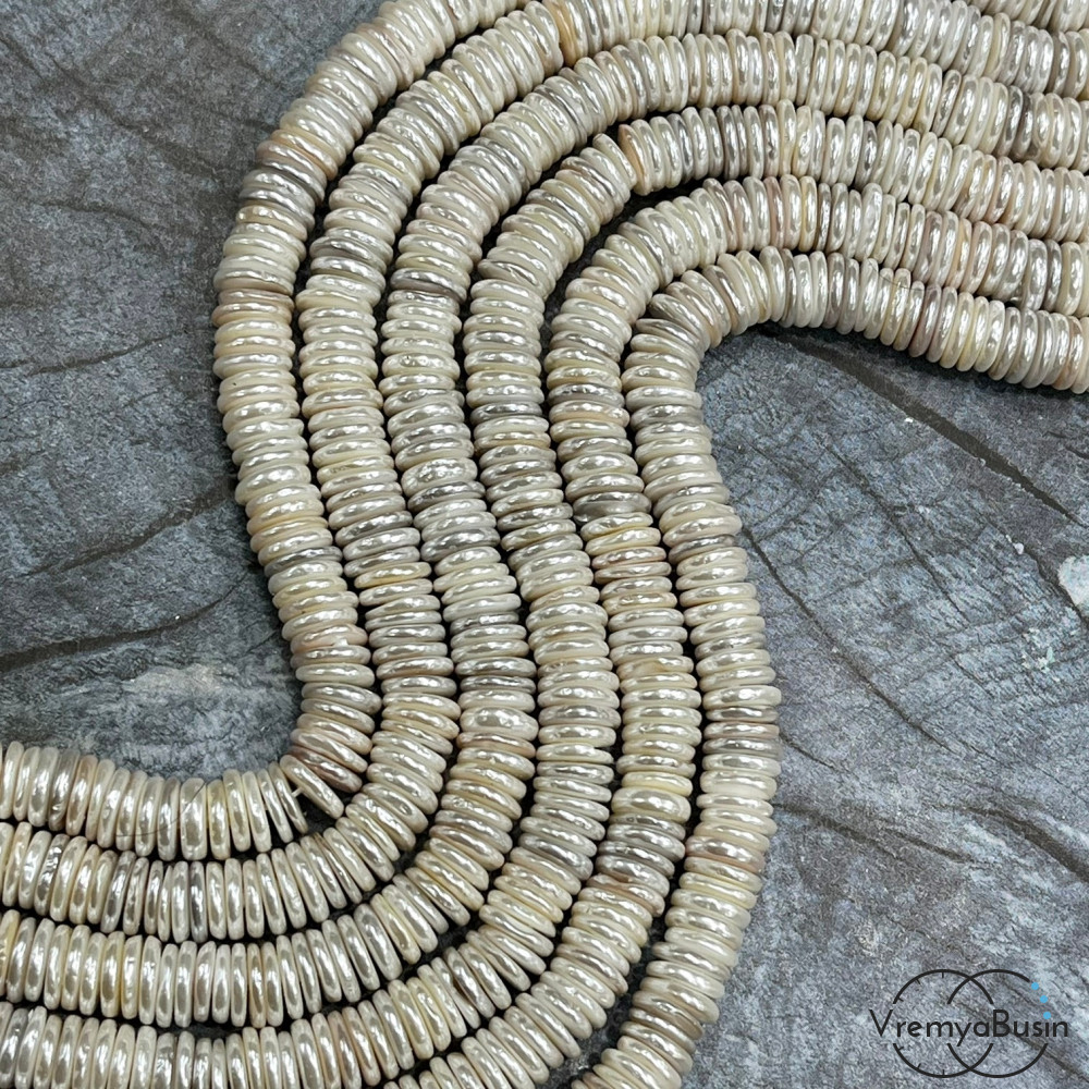Жемчуг майорка, диск гладкий ок. 8х2.5 мм, цв. белый (нить, ок. 160 шт.)