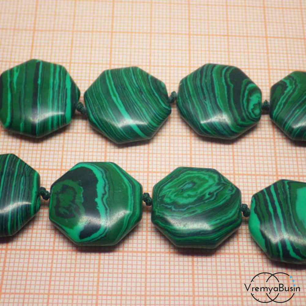 Малахит прессованный. Плоский восьмиугольник. 20 мм