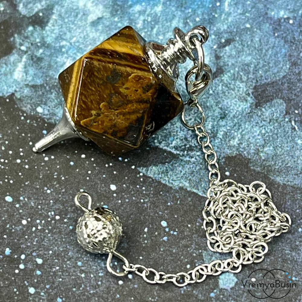 • Тигровый глаз. Кулон из камня «Маятник с цепочкой», ок. 38х16 мм (1 шт.)