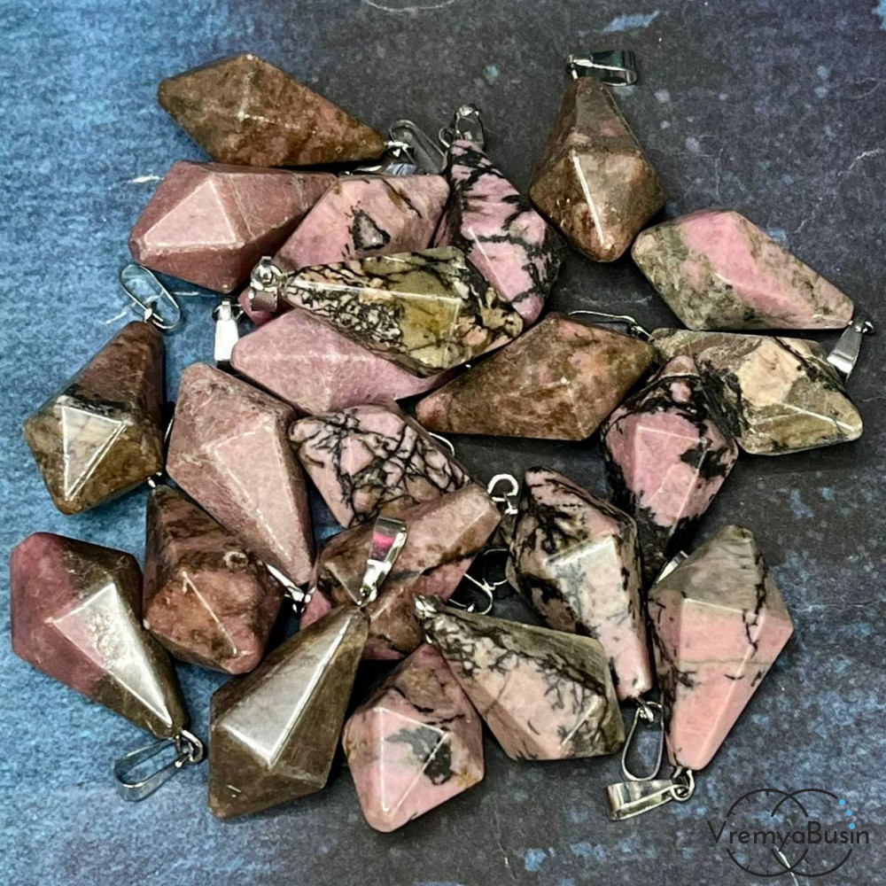 • Родонит, кулон из камня "Кристалл", ок. 15х30 мм (1 шт.)