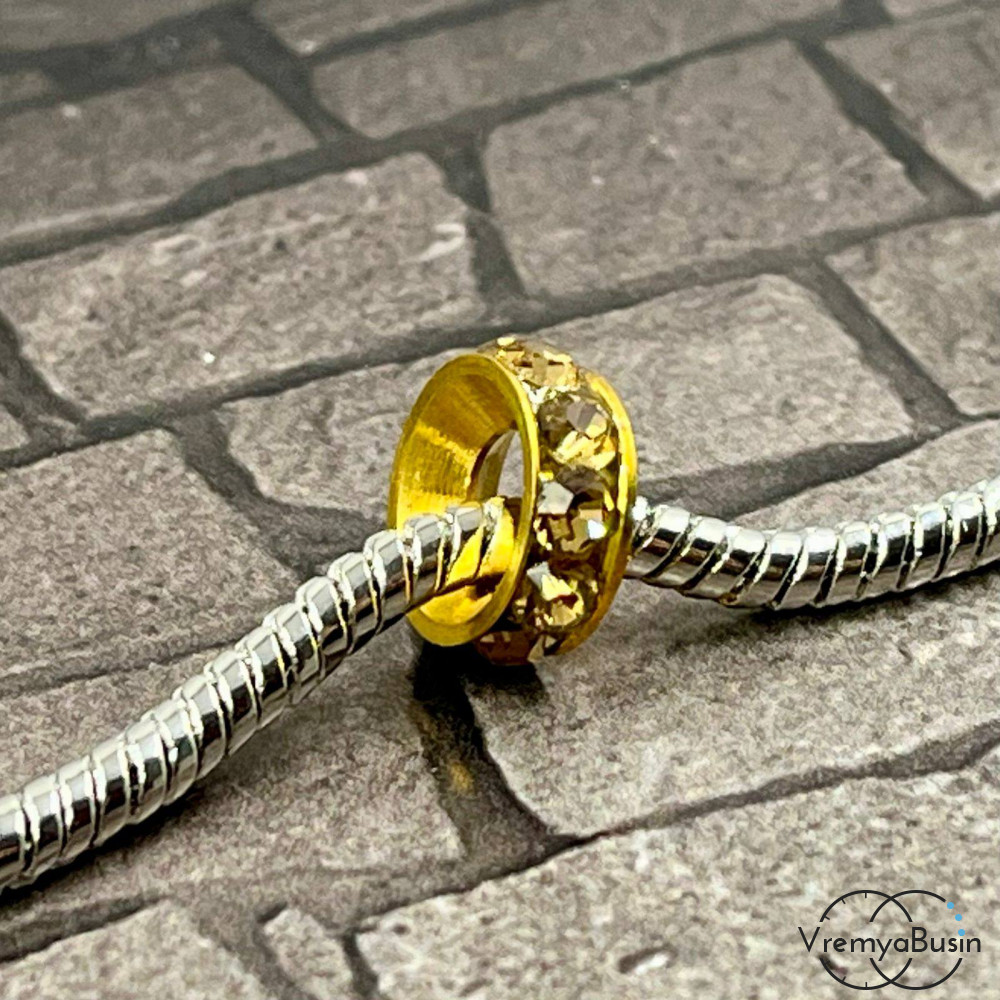 Бусина металлическая со стразами, кольцо 10х4 мм, цв. кремовый (1 шт.)