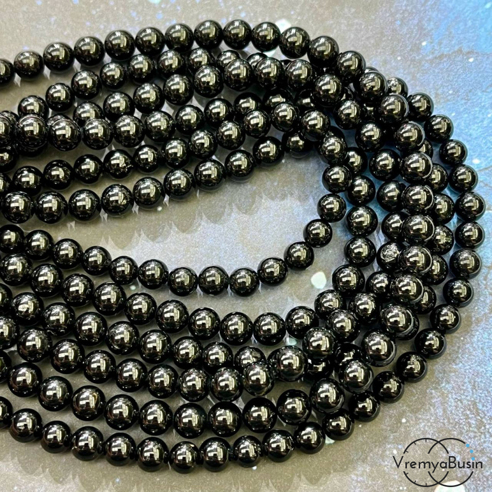 • Черный турмалин, шарик гладкий 6 мм (1/2 нити, ок. 32 шт.)
