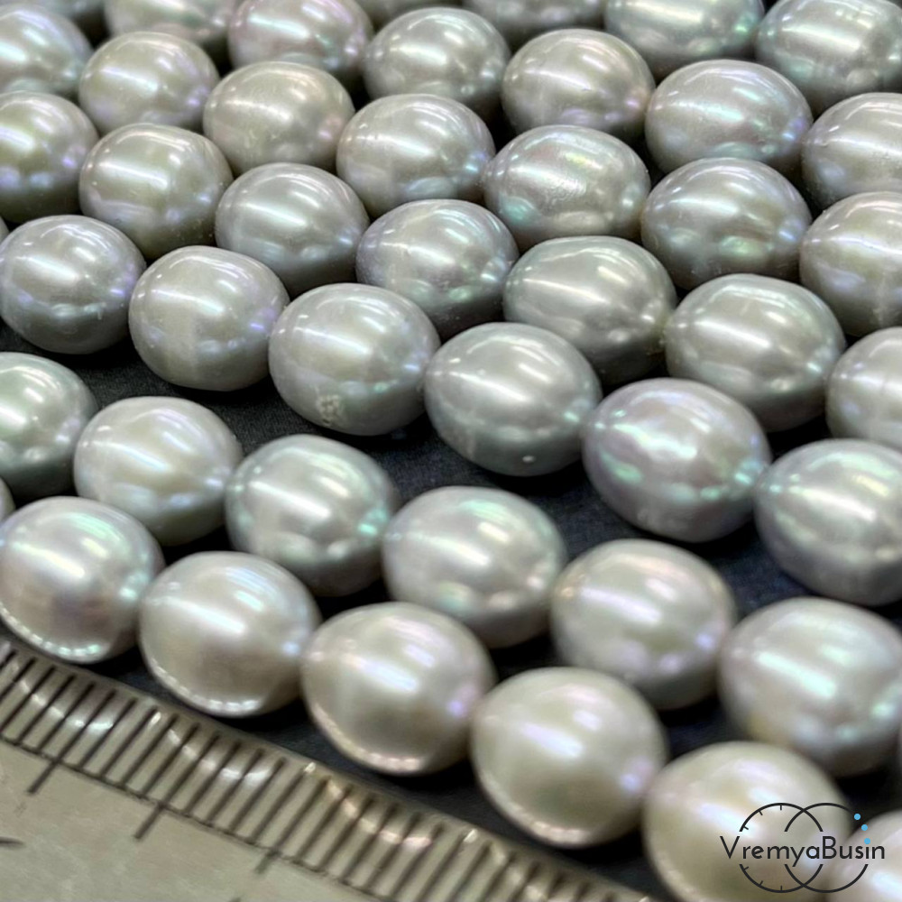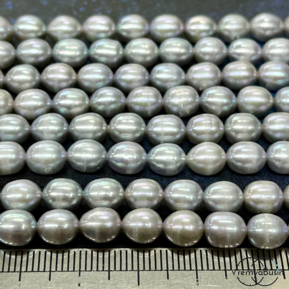 Жемчуг натуральный речной, овальный цв. серый , ок. 6х8 мм (нить, ок. 45 шт.)