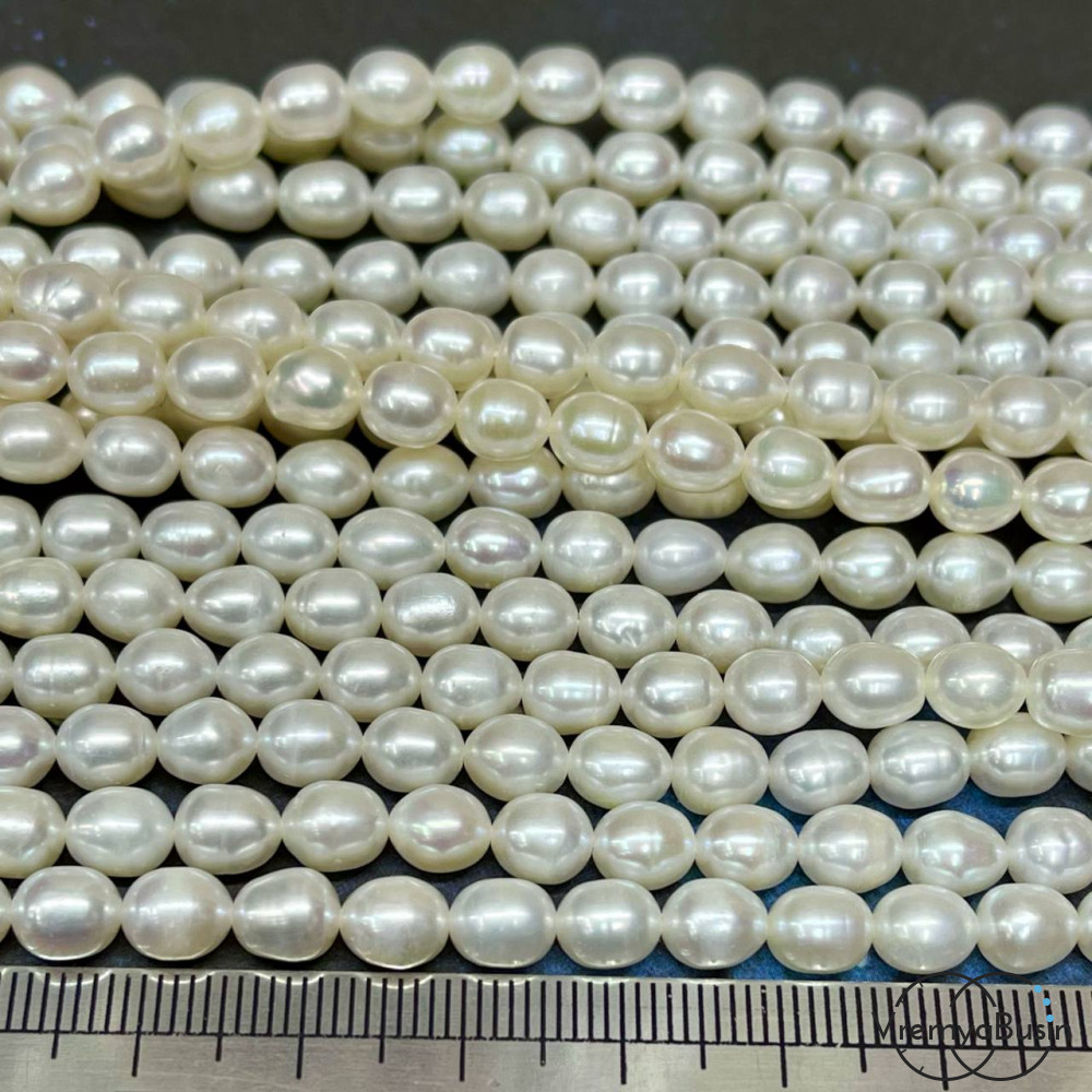 • Жемчуг натуральный речной, овальный цв. белый , ок.    6х7    мм (нить, ок.   50    шт.)